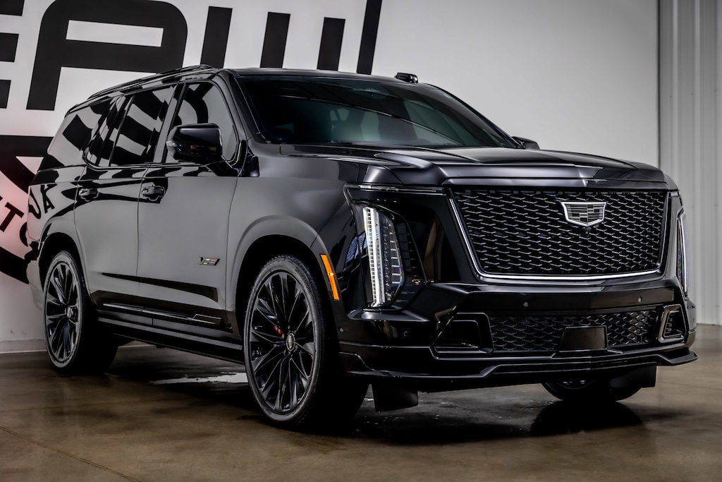 LPO, ONYX PACKAGE includes (RIK) Gloss Black Escalade nameplate, LPO, (5FE) 24 Black alloy wheels, LPO and (R88) Black illuminated Cadillac emblem, LPO, LPO, FLOOR LINER PACKAGE includes (CAV) Integrated cargo liner, LPO, (AAK) Premium all-weather floor liners, 1st and 2nd rows, LPO and (RIB) All-Weather Floor Liner Package, 3rd row, LPO, ENGINE, 6.2L SUPERCHARGED V8 DI, VVT (682 hp [509 kW] @ 6000 rpm, 653 lb-ft torque [885 N-m] @ 4400 rpm) (STD), TRANSMISSION, 10-SPEED AUTOMATIC electronically controlled with overdrive, tow/haul mode and tap up/tap down shifting (STD)