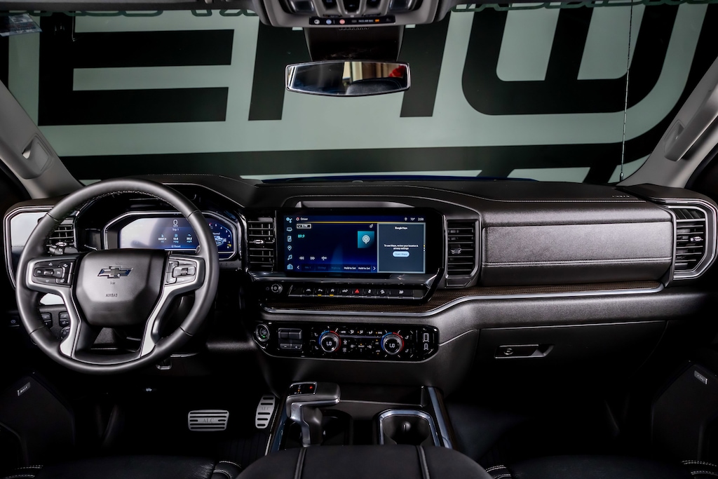 ENGINE, 6.2L ECOTEC3 V8 (420 hp [313 kW] @ 5600 rpm, 460 lb-ft of torque [624 Nm] @ 4100 rpm); featuring Dynamic Fuel Management that enables the engine to operate in 17 different patterns between 2 and 8 cylinders, depending on demand, to optimize power delivery and efficiency, CONVENIENCE PACKAGE II includes (UG1) Universal Home Remote, (A48) rear sliding power window, (PZ8) Hitch Guidance with Hitch View, (JL1) Trailer brake controller and (UET) Trailering App Includes (UQA) Bose Premium Sound System.), SAFETY PACKAGE includes (UV2) HD Surround Vision, (UD5) Front and Rear Park Assist, (TRG) Trailer Camera Provisions, (UKV) Trailer Side Blind Zone Alert, (UFB) Rear Cross Traffic Braking, (UKK) Rear Pedestrian Alert and (U12) Perimeter Lighting, SUNROOF, POWER on Crew Cab models, Z71 OFF-ROAD PACKAGE includes (Z71) Off-Road suspension, (JHD) Hill Descent Control, (NZZ) skid plates and (K47) heavy-duty air filter Includes Z71 hard badge, (N10) dual exhaust, (RCV) 18 bright silver painted wheels, (XCK) 265/65R18 all-terrain, blackwall tires and (NQH) 2-speed transfer case. PROTECTION PACKAGE includes (B1J) wheel house liners and (CGN) Chevytec spray-on bedliner, SEATS, FRONT BUCKET with center console (Includes (EPH) Electronic Transmission Range Selector (console mounted). TAILGATE, MULTI-FLEX with six functional load/access features, NOTE: Auto release can be disabled if ball hitch is installed. See Owners manual for details, AUDIO SYSTEM, CHEVROLET INFOTAINMENT 3 PREMIUM SYSTEM with Google built-in compatibility (select service plan required, terms and limitations apply) including navigation capability, 13.4 diagonal HD color touchscreen, includes multi-touch display, AM/FM stereo, Bluetooth® streaming audio for music and most phones; featuring Wireless Apple CarPlay® and Wireless Android Auto® capability for compatible phones, advanced voice recognition, in-vehicle apps, personalized profiles for infotainment and vehicle settings (STD), TRANSMISSION, 10-SPEED AUTOMATIC with Electronic Transmission Range Selector, (ETRS), electronically controlled with overdrive, tow/haul mode and steering column paddle shifters. Includes Cruise Grade Braking and Powertrain Grade Braking