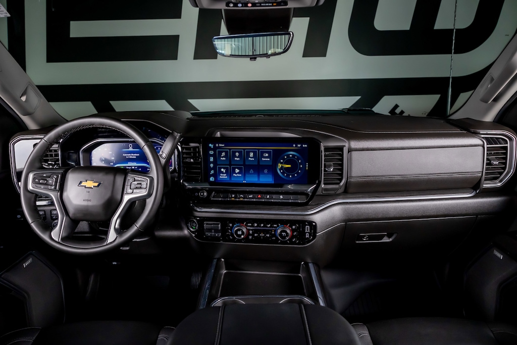 LTZ CONVENIENCE PACKAGE includes (A50) bucket seats with (D07) center console, (KQV) heated and ventilated front seats, (QT6) power up/down tailgate, (UF2) bed LED cargo area lighting, (UBC) USB Ports, (UQA) Bose Premium Audio System and (K4C) Wireless Charging, SAFETY PACKAGE includes (UD7) Rear Park Assist, (UKV) Trailer Side Blind Zone Alert and (UFG) Rear Cross Traffic Alert Includes (HS1) Safety Alert Seat, (UV2) HD Surround Vision, (UVN) Bed View Camera and (TRG) Trailer Camera Provisions.), TECHNOLOGY PACKAGE includes (DRZ) Rear Camera Mirror and (UV6) Multicolor 15 Diagonal Head-Up Display, Z71 OFF-ROAD AND PROTECTION PACKAGE includes (Z71) Off-Road suspension with off-road tuned twin tube shocks, (JHD) Hill Descent Control and (NZZ) skid plates (transfer case and oil pan), (CGN) Chevytec spray-on bedliner, (AAK) All-weather Z71 floor liners, LPO, Z71 grille insert (replaces Bowtie emblem) and Z71 fender badge (replaces 4X4 decal on bed) Includes (PYV) 18 machined aluminum wheels and (QF6) LT275/70R18E all-terrain, blackwall tires. LTZ CONVENIENCE PACKAGE II includes (A48) Rear sliding power window, (UG1) Universal Home Remote, (KA6) Rear heated seats and (KSG) Adaptive Cruise Control. ASSIST STEPS, CHROMED, 6 RECTANGULAR (factory installed), AUDIO SYSTEM, CHEVROLET INFOTAINMENT 3 PREMIUM SYSTEM with Google built-in compatibility (select service plan required, terms and limitations apply) including navigation capability, 13.4 diagonal HD color touchscreen, includes multi-touch display, AM/FM stereo, Bluetooth® streaming audio for music and most phones; featuring Wireless Apple CarPlay® and Wireless Android Auto® capability for compatible phones, advanced voice recognition, in-vehicle apps, personalized profiles for infotainment and vehicle settings (STD), ENGINE, 6.6L V8 with Direct Injection and Variable Valve Timing, gasoline, (401 hp [299 kW] @ 5200 rpm, 464 lb-ft of torque [629 N-m] @ 4000 rpm) (STD), TRANSMISSION, ALLISON 10-SPEED AUTOMATIC (STD)