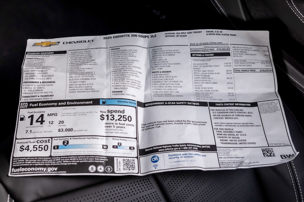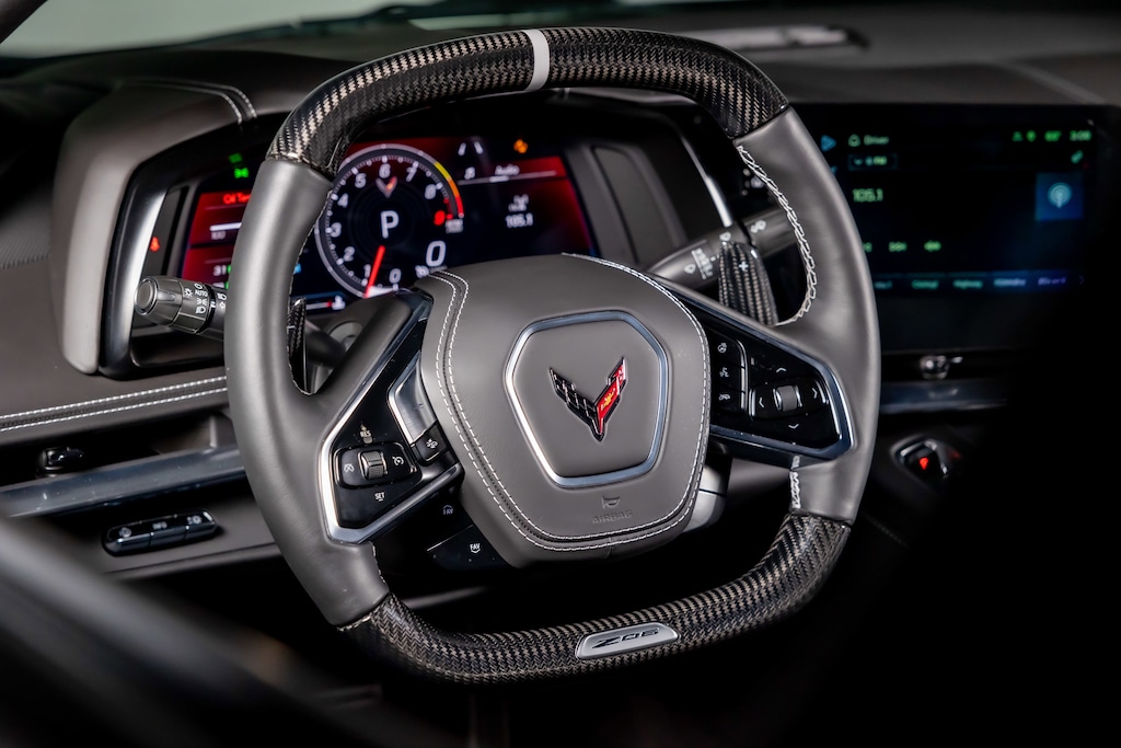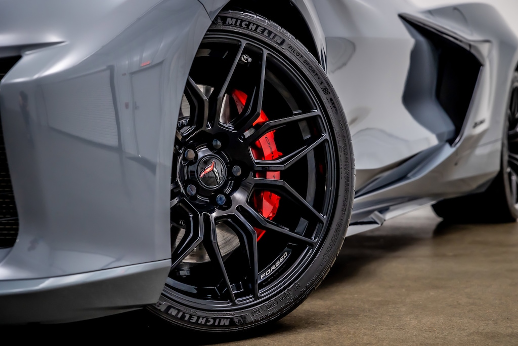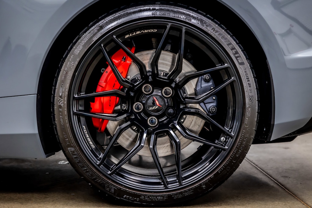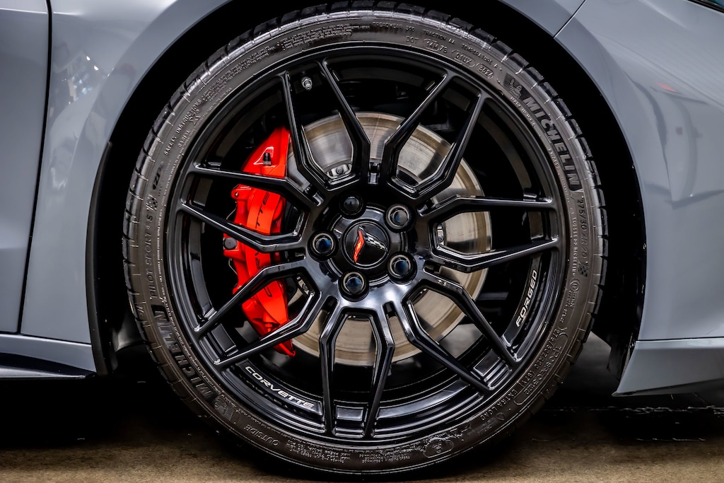 WHEELS, 20 X 10 (50.8 CM X 25.4 CM) FRONT AND 21 X 13 (53.3 CM X 33 CM) REAR SPIDER DESIGN, BLACK FORGED ALUMINUM, AUDIO SYSTEM, CHEVROLET INFOTAINMENT 3 PREMIUM SYSTEM with Google built-in compatibility (select service plan required, terms and limitations apply) including navigation capability, 8 diagonal HD color touchscreen, includes multi-touch display, AM/FM stereo, Bluetooth® streaming audio for music and most phones; featuring Wireless Apple CarPlay® and Wireless Android Auto® capability for compatible phones, advanced voice recognition, in-vehicle apps, personalized profiles for infotainment and vehicle settings (STD), ENGINE, 5.5L V8 DI, HIGH-OUTPUT Variable Valve Timing (VVT), (670 hp [499.6 kW] @ 8400 rpm, 460 lb-ft of torque [623.8 N-m] @ 6300 rpm) (STD), TRANSMISSION, 8-SPEED DUAL CLUTCH, INCLUDES MANUAL AND AUTO MODES (STD)