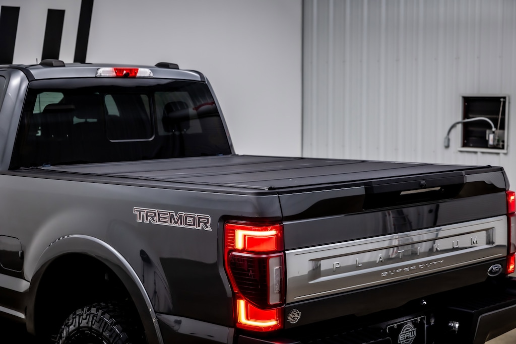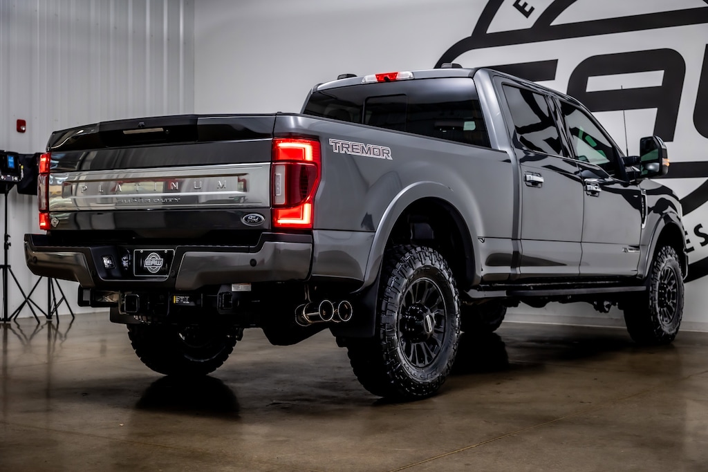 TREMOR OFF-ROAD PACKAGE unique front springs - ride height increase, rear electronic locking differential, front limited slip differential, performance front and rear shock absorbers, unique front air dams w/approach angle improvement, transfer case and axle water fording vent tubes, rock crawl mode and trail control mode, Tremor Off-Road Decal, Transfer Case & Fuel Tank Skid Plates, Tires: LT285/75R18E BSW Automatic Transmission, Off-road, LT285/75R18E BSW Spare Tire, Textured Matte Finish Off-Road Running Boards, Conventional Road Spare Wheel, Wheels: 18 Low-Gloss Black Painted Aluminum, Body-Color Wheellip Moldings, Lane Departure Warning, TWIN PANEL POWER MOONROOF map lights and moonroof switches, PRO TRAILER BACKUP ASSIST - HIGH CAPACITY Note: Salespersons Portfolio or Trailer Towing Guide should be consulted for specific trailer towing or camper limits and corresponding required equipment, axle ratios and model availability, See Supplemental Reference for vehicle height consideration, Ultimate Trailer Tow Camera System, rear view camera, 360 degree camera system, rear CHMSL camera, trailer reverse guidance and LED center high-mounted stop lamp, High Capacity Trailer Tow Package, increased GCW from 23,500 lbs, to 30,000 lbs and upgraded axle, Note: Salespersons Portfolio or Trailer Towing Guide should be consulted for specific trailer towing or camper limits and corresponding required equipment, axle ratios and model availability, See Supplemental Reference for vehicle height, TRANSMISSION: TORQSHIFT 10-SPEED AUTOMATIC SelectShift and selectable drive modes: normal, tow/haul, eco, deep sand/snow and slippery, ADVANCED SECURITY PACK INCLINATION SENSOR REMOVAL Intrusion sensor removal, SecuriLock Passive Anti-Theft System (PATS)