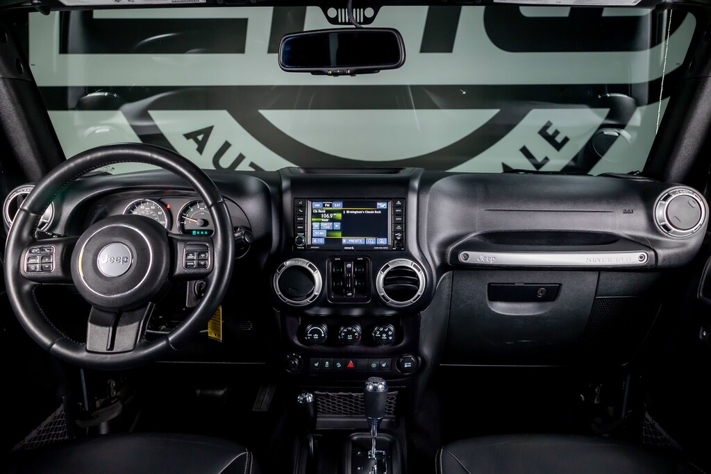 DUAL TOP GROUP Black 3-Piece Hard Top, If ordering without AEM (Dual Top Group), the black soft top will not be included, Freedom Panel Storage Bag, Rear Window Defroster, Rear Window Wiper/Washer, Delete Sunrider Soft Top, Premium Black Sunrider Soft Top, TRANSMISSION: 5-SPEED AUTOMATIC (W5A580) Tip Start, Hill Descent Control, BLACK, LEATHER TRIMMED BUCKET SEATS Front Seat Back Map Pockets, Driver Height Adjuster Seat, Heated Front Seats, RADIO: UCONNECT 430N CD/DVD/MP3/HDD/NAV 6.5 Touch Screen Display, Remote USB Port, GPS Navigation, SiriusXM Travel Link, 40GB Hard Drive w/28GB Available, ALPINE 9-SPEAKER W/ALL WEATHER SUBWOOFER Amplified 552W 9 speaker, including subwoofer, CONNECTIVITY GROUP Vehicle Information Center, Tire Pressure Monitoring Display, SUPPLEMENTAL FRONT SEAT SIDE AIR BAGS, REMOTE START SYSTEM, AIR CONDITIONING W/AUTO TEMP CONTROL Humidity Sensor, Air Filtering, ENGINE: 3.6L V6 24V VVT (STD)